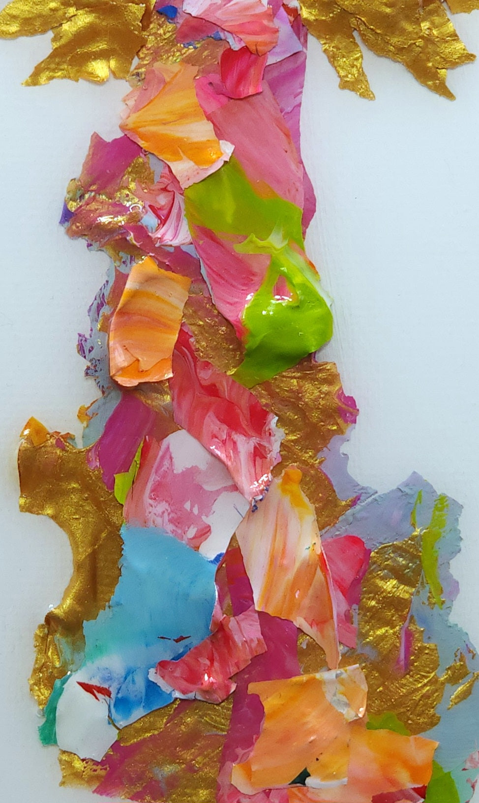 Each piece of artwork is uniquely created with recycled paint chips and covered in resin.